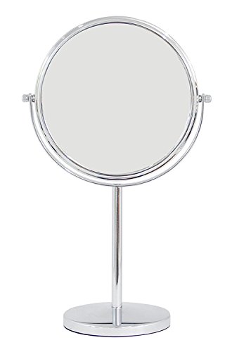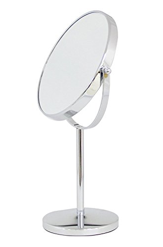 Two-Sided (1X-3X) Countertop Tabletop Vanity Makeup Mirror - Silver Tall Stand Chrome Finished