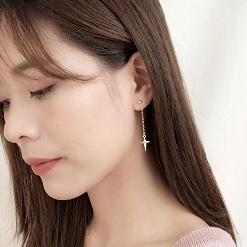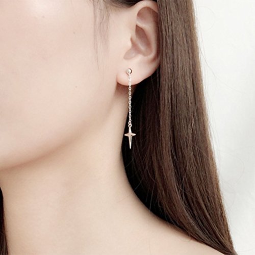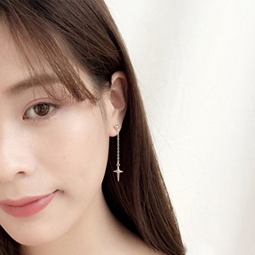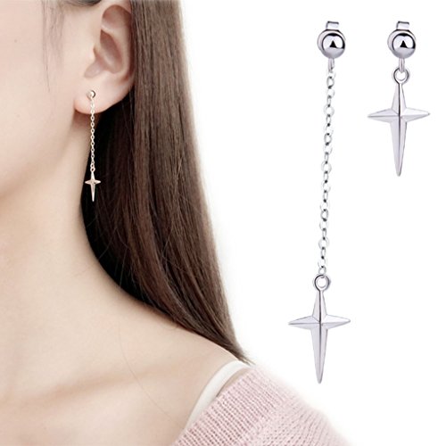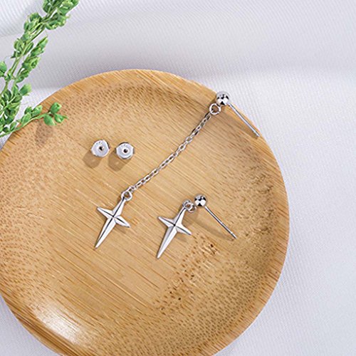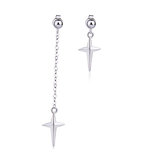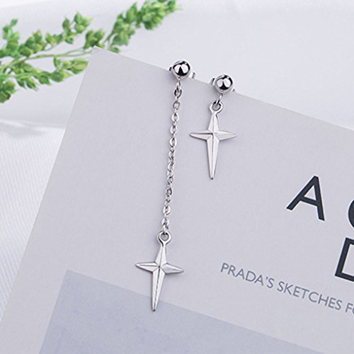 Leiothrix Asymmetry Hypoallergenic Geometrical Cross Dangle Stud Earrings Silver Jewelry for Women and Girls