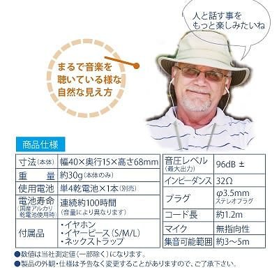 ◆ Sound collector which can hear small voice loudly ◆ Introduction type of stylish shape to people who have resistance to hearing aids, people to use at the event etc. ◆ Neck straps to be lowered from the neck, clips that can be attached to pockets, S / M /