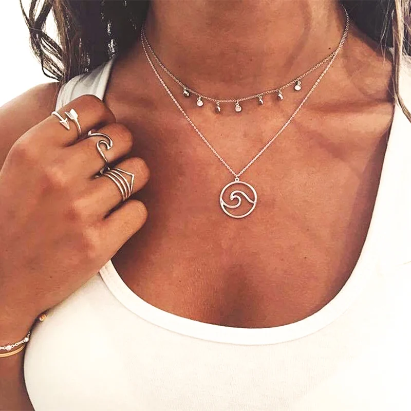 Idea 1:sea wave wafer chain pendant necklace