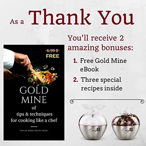 - DON’T COMPROMISE ON LESS THAN 110% SATISFACTION! – If for any reason you are not happy with your product, EasyR Home will replace your salt and pepper grinder set, no questions asked. We create premium products and back them up with our 30 DAYS money back guarantee. Order your set today before the price goes up and receive an eBook PLUS 3 RECIPES inside FREE. This is a RISK FREE limited time offer!