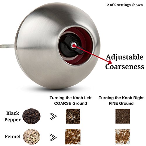 - QUALITY CONSTRUCTION – With a fingerprint-resistant stainless steel base and acrylic top and handle, this spice crusher set will last for years to come. The adjustable ceramic mechanism can grind nearly any small dry herb and spice. Our salt and pepper mill set is an elegant and fancy addition to your holiday table, and a winning gift idea as a housewarming present or a holiday offering.