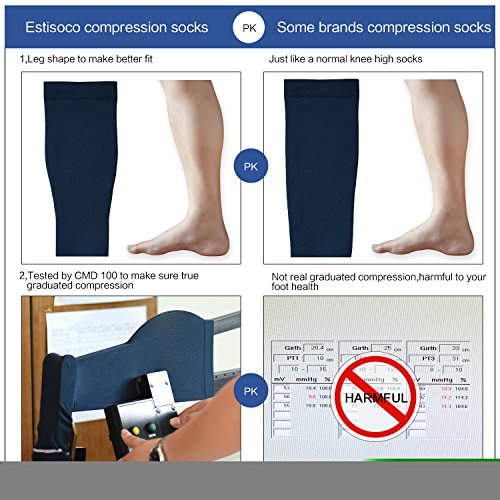 - COMPRESSION HELPS RESTORE AND MANTAIN GOOD LEG HEALTH-The pressure valve maximum at the ANKLE that Gradually Decreases up the leg-to Soothe, Massage and Energize your leg & feet, Relieve Pain, regulate blood flow, and provide a comfortable and everyday fit. The Compression Socks elaborated to enhance your daily performance, no more tired or fatigued legs! Recommended in helping and preventing varicose veins, shin splints and post-surgical treatments.