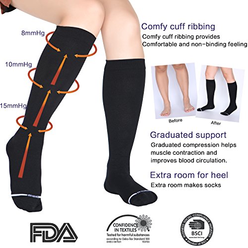 - QUALITY ASSURANCE: Our knee high compression socks material is upgraded with 95%nylon,5%elastane, Delivers 360-degree stretch for greater flexibility and durability,breathable high performance fabric keeps an optimal temperature. All the yarn supplied by Oeko-text Standard 100 audit supplier,and the sock made by FDA audit manufacture.No other offering on the market provides compression sock with such competitive price with same quality!