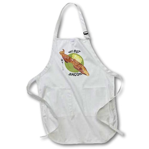 3dRose My Big Bacon - Full Length Apron, 22 by 30-Inch, White, with Pockets (apr_46457_1)