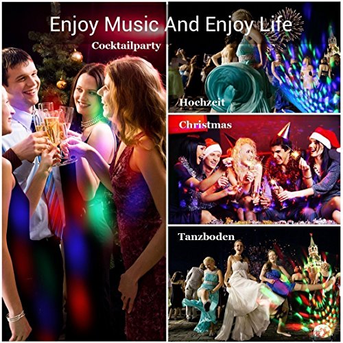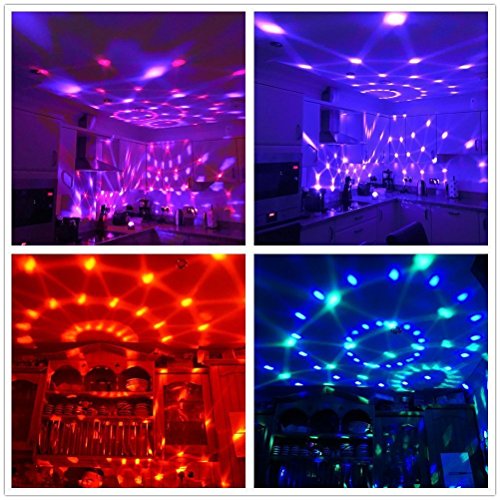 - Magic stage lighting: 6pcs RGB LED colorful light, automatically Rotating magic crystal ball strobe light, colorful light with music sound will be changed;