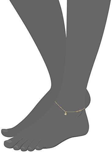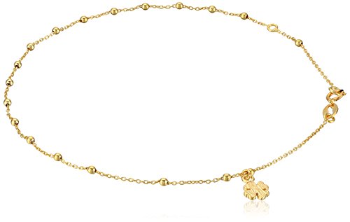 14k Yellow Gold Italian Station Beaded Clover Leaf Charm Anklet, 9"