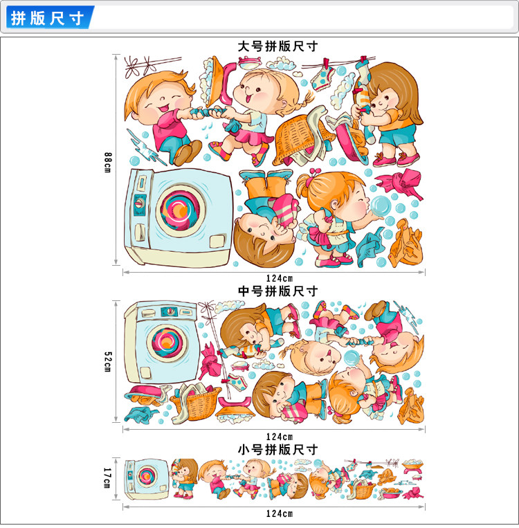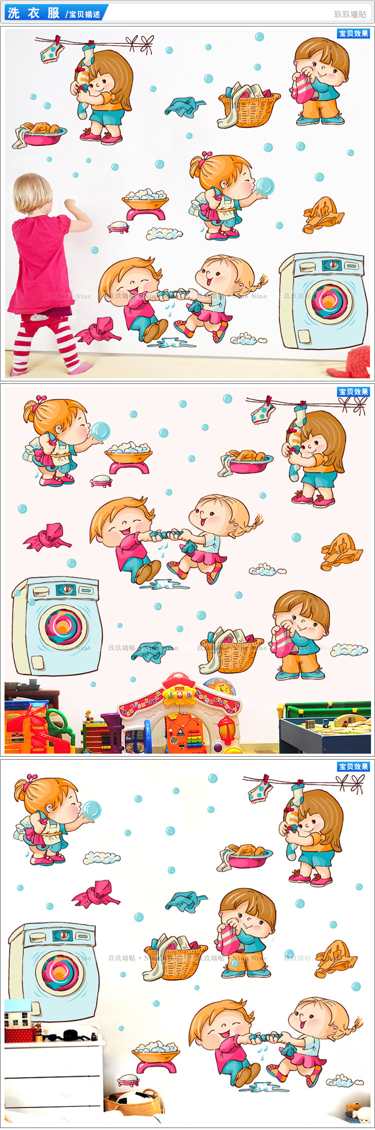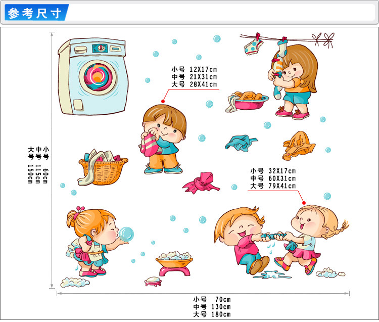 幼儿园亲子娱乐园墙贴卡通可爱小孩劳动洗衣机吹泡泡防水贴纸贴画