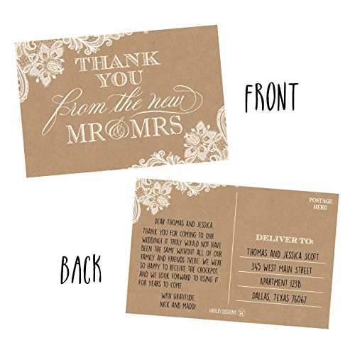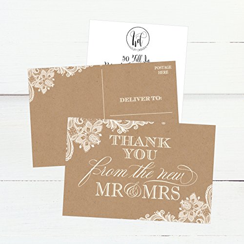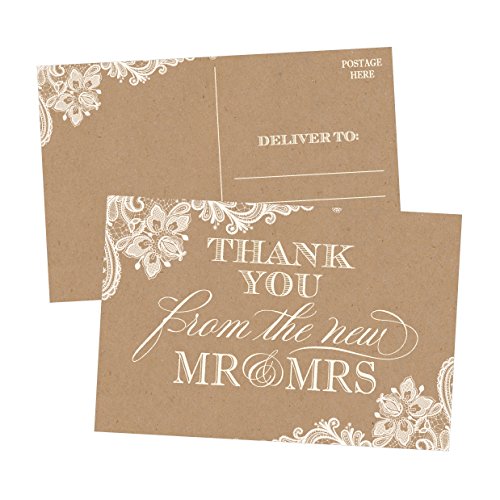 50 4x6 Rustic Kraft Thank You Postcards Bulk, Cute Blank Thank You Cards From The New Mr. and Mrs. Thank You Note Card Stationery Set For Wedding Gifts, Bridesmaid, Bridal Shower, Engagement Party