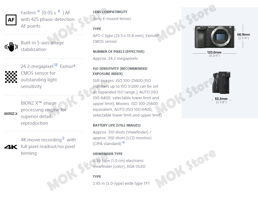 - Sony A6500 Body (Without lens)