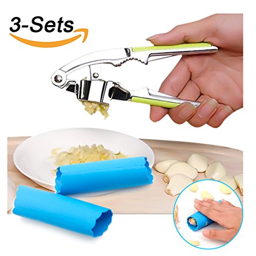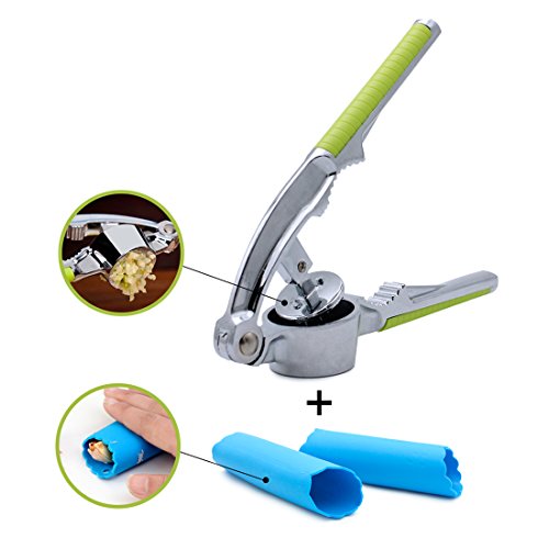 Wiliboat Heavy Duty Garlic Press Crusher with 2 Peelers Set, Stainless Steel Ginger Mincer Kitchen Chef Gift Gadgets Tools