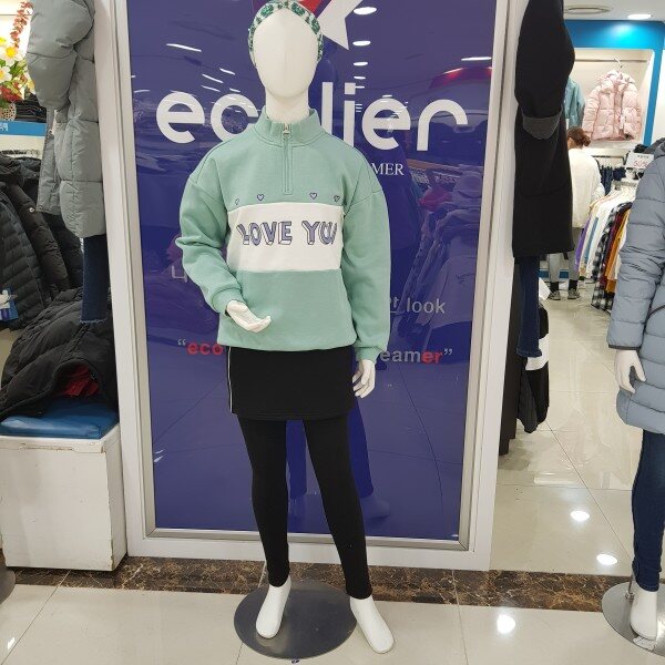 기모가 있어서 따뜻하고 지퍼가 있어서 입고 벗기 편해요 가운데 포인트가 사랑스럽고 예뻐요