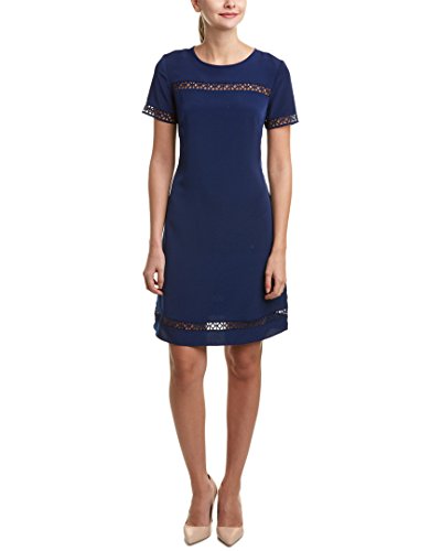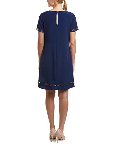 Donna Ricco Women's Short-Sleeve Solid Soho Crepe Shift Dress with Lace Detail