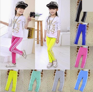 Busana bayi anak-anak gadis garis-garis warna permen celana kasual Clothing baby girls candy color stripes casual pants KID SJA3237482734823 HAL qty000