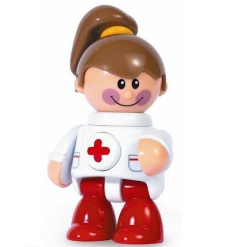 Product DescriptionThis nurse has Clicking, rotating arms and legs and a squeaker in her belly. She is safe for teething.0