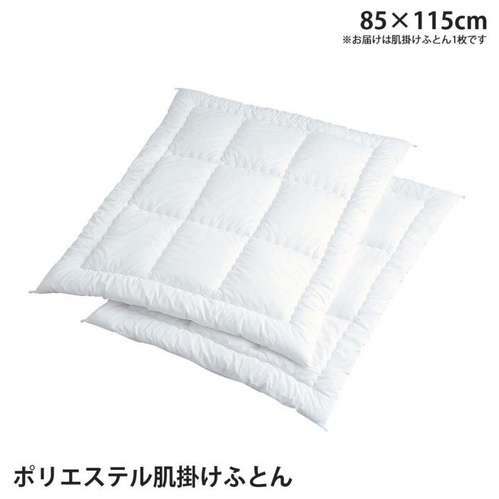 fk094igrjsホコリの出にくいポリエステルわたを使用した掛けふとんです。お好みのカバーリングと合わせてご使用いただけます。 製造国:日本 素材・材質:ふとんがわ:ポリエステル65%・綿35%、詰めもの:ポリエステル100% 商品サイズ:85×115cm 重量:0.3kg 仕様:洗濯機使用可(ネット使用・弱流水)※お届け地域により、別途運賃がかかる場合やお届けできない場合がございますので、お問い合わせ下さい。