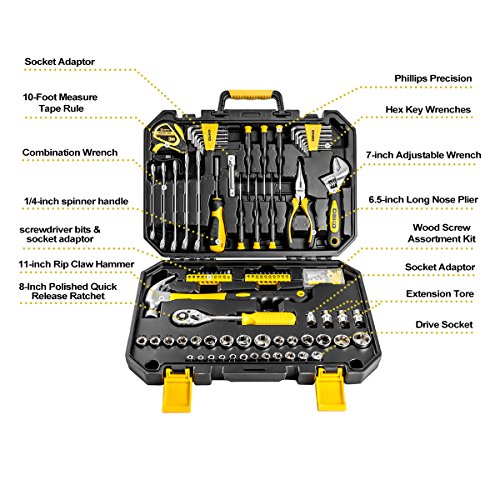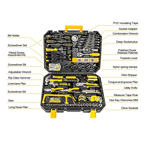 DEKOPRO 128 Pieces Tool Set--General Household Hand Tool Kit, Auto Repair Tool Set, with Plastic Toolbox Storage Case (128PCS)