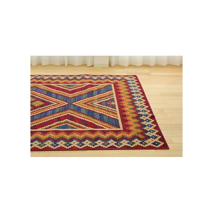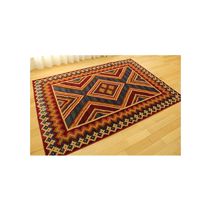 유한회사《사얀사얀》 《기리무》 기하학무늬 초박형 러그 콘 자 《모켓토》옷감 레드 약 90x150 cm 약 1다다미 핫 카펫트 대응