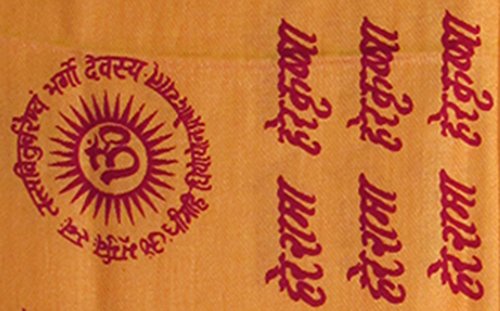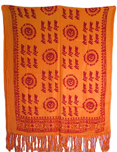 Binding : Apparel Product Description This beautiful piece is made from a soft cotton-rayon blend in vivid colors of Saffron Yellow Red. This shawl features the Om symbol as well as Hare Rama Hare Krishna Gayartri Mantra written in sanskrit and Hindu auspicious symbols along its length width. With a fringe border, this is sure to be one that you'll treasure for years to come. Versatile in use, it can be used for Meditation, Prayer, an Altar Cloth, a Wall Tapestry, Tablecloth and much more! 0
