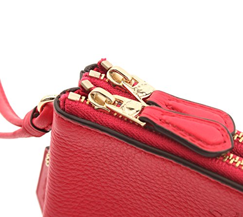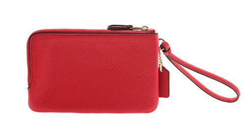 -. Title : Pebble Leather Double Corner Zip Wristlet in Bright Pink