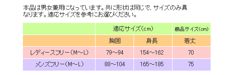 サイズ 【レディースフリー】胸囲:79~94cm、着丈:70cm