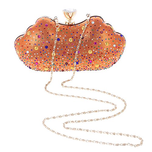 -. Title : Damara レディース イブニングバッグ パーティーバッグ 多彩 ラインストーン付き 結婚式 演奏会 オレンジ
