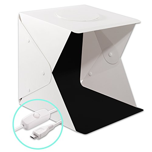 Portable Photography Studio, Zenic Mini Portable and Folding Photo Light Box Studio Photo Photography Tent Kit with LED Light and Background (17.7x17.3x17 inches)