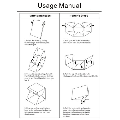 Portable folding design can be carried everywhere and save space than the traditional photo studio when it is folded (Unfolded Size: 45x44x43cm/17.7x17.3x17 inches. Folded: 45x44x4cm/17.7x17.3/1.6 inches)