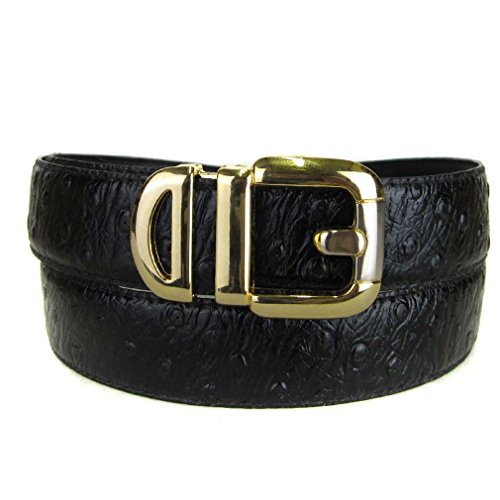 -. Binding : Apparel -. Brand : The Perfect Necktie -. Color : Black -. Department : boys -. Feature : Black / High Quality Bonded Ostrich Skin / 18 inches - 30 inches Long * 1.125 inches High / 30 Day Money Back Guarantee / Unique Style -. ProductGroup : Apparel -. ProductTypeName : ACCESSORY -. Title : Black Bonded Ostrich Skin High Quality Fashion Dress Belt