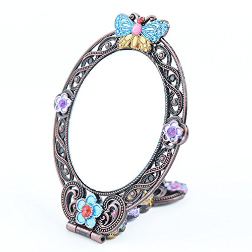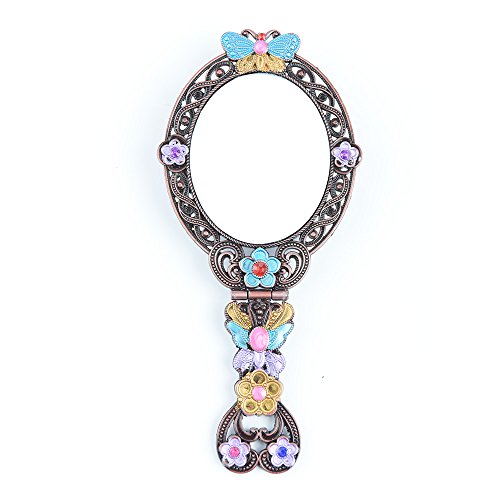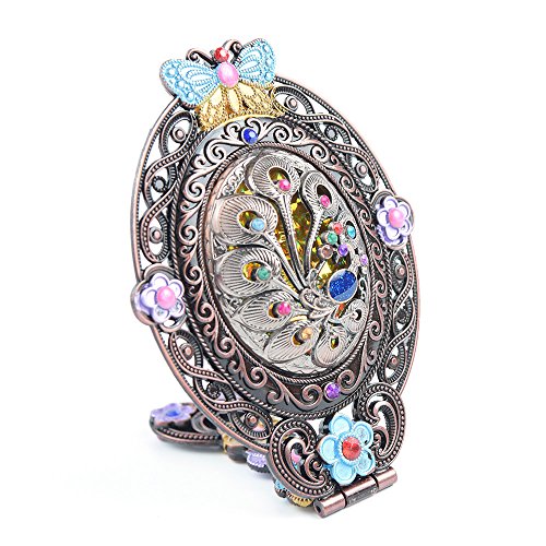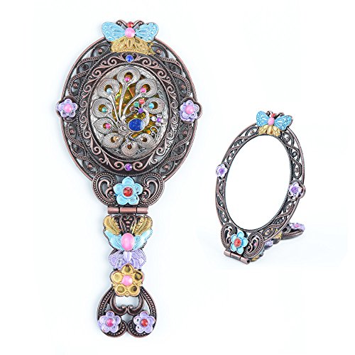 Product Details - Material: Metal, crystal. Size: Approx 8 inches long as a hand mirror 3 inches high in its folded position. Color: As the picture. Package: 1 x cosmetic mirror in gift box