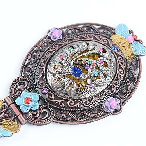 Design - The retro royal mirror was made from metal it is ornately decorated in jewels. Attractive color matching. Superb craftsmanship. It is a very ornate hand held mirror in the Art Nouveau or Art Deco style.