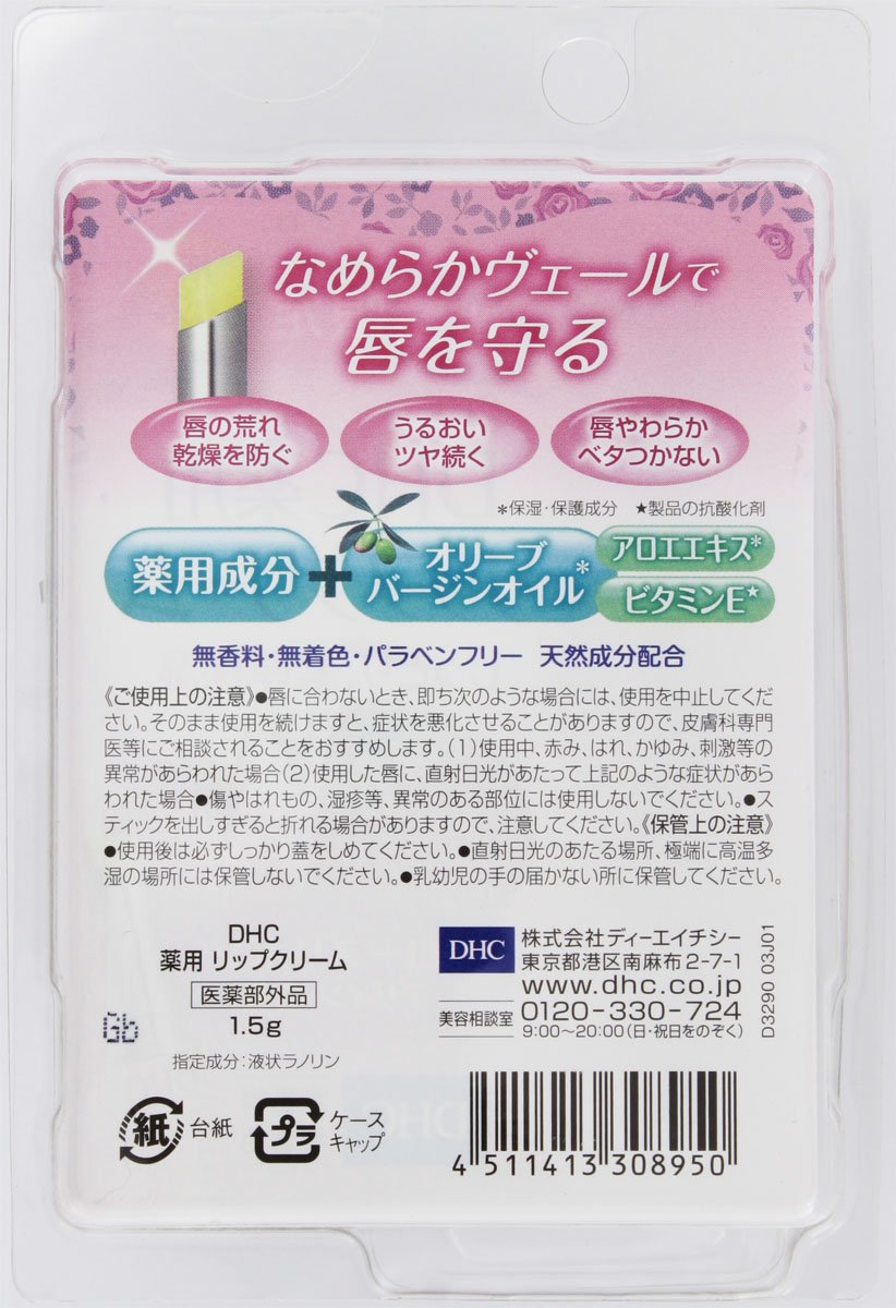 『DHC薬用リップクリーム』は、オリーブバージンオイルやアロエエキスをはじめ、甘草誘導体やビタミンEなどの保護成分を配合しました。