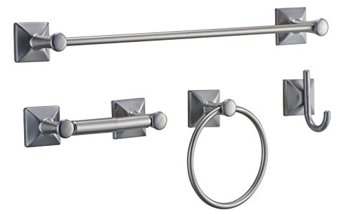 -. Feature : 4-Pc. Set Includes 18" Long Towel Bar / Heavy Duty Posts Are Electroplated Zinc Alloy / PVD Brush Nickel Finish / Concealed Screws For Added Beauty, Mounting Hardware Included / Redo the whole look of your bathroom with one kit
