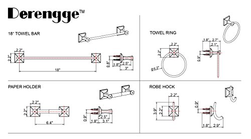 -. Title : Derengge EBA-0085-BN 4-piece Bathroom Hardware Accessory Set with 18" Towel Bar -Towel ring- Paper holder-Robe hook Brush Nickel