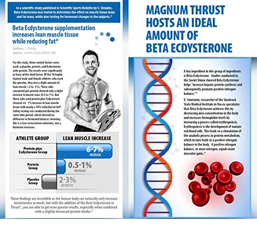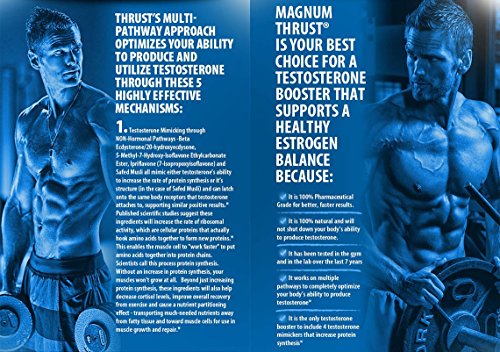 -. Feature : NATURAL TESTOSTERONE BOOSTER - Magnum Thrust is the best choice for a testosterone booster that supports healthy estrogen balance. Its the only testosterone booster to include 4 testosterone mimickers that increase protein synthesis. / MULTI-PATHWAY APPROACH - Magnum Thrust optimizes your ability to produce and utilize testosterone through 5 highly effective mechanisms - Thrust's multi-pathway approach optimizes your ability to produce and utilize and produce and utilize testosterone. / 100% ALL NATURAL - Magnum Thrust will not shut down your bodies natural testosterone production. It will only help optimize it. It has been tested in the gym and in the lab over the last 7 years. / STRONGER & HARDER MUSCLES - Increasing your natural testosterone levels allows your body to develop muscle fibers fast as well as take fewer days for fibers to recovery. Minimizing the muscle recovery days allows the for harder, leaner muscles while developing strength. / RESTFUL SLEEPS - Researchers have gone on to claim that low levels of testosterone alter the way the brain "syncs." The perfect synchronization is required in the brain to attain deep sleep. Thus, inadE.q.u.a.t.e testosterone levels aid against syncing, and therefore, may aid men from reaching the deep sleep cycle.
