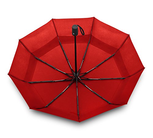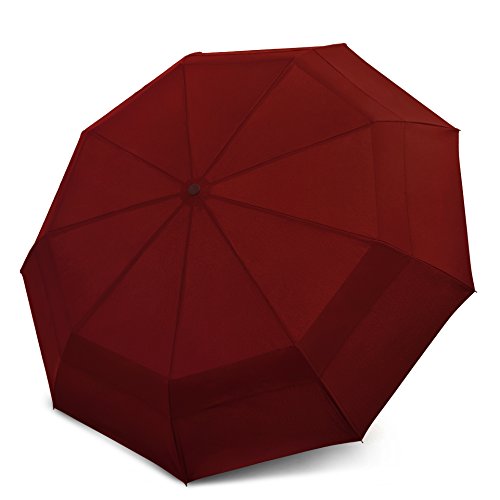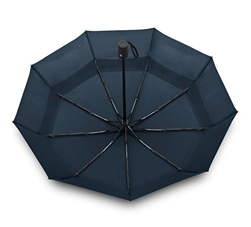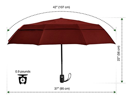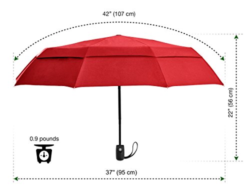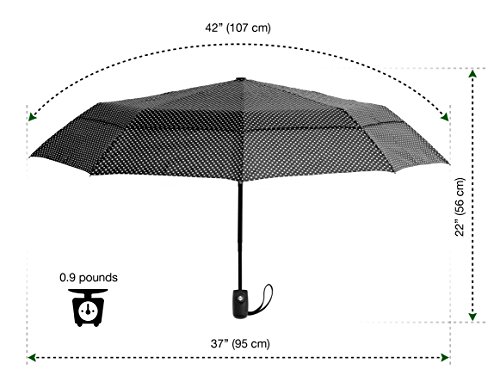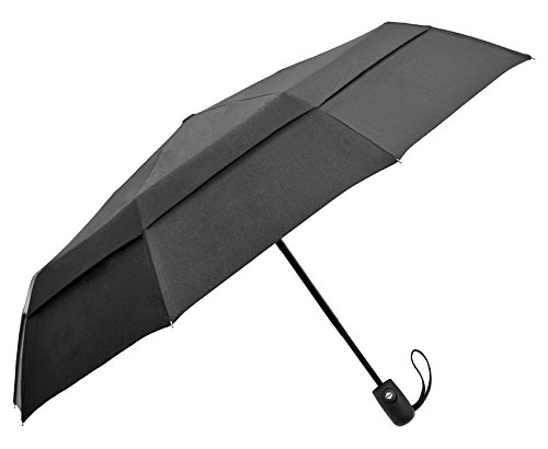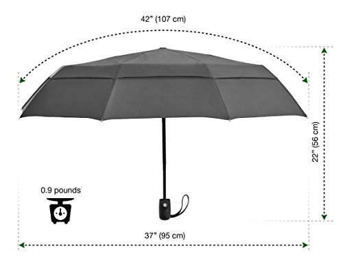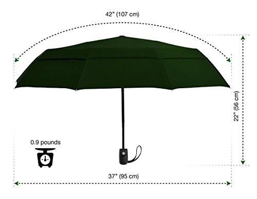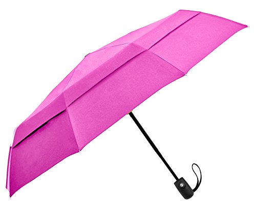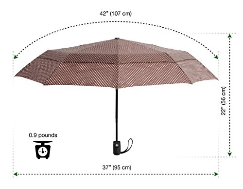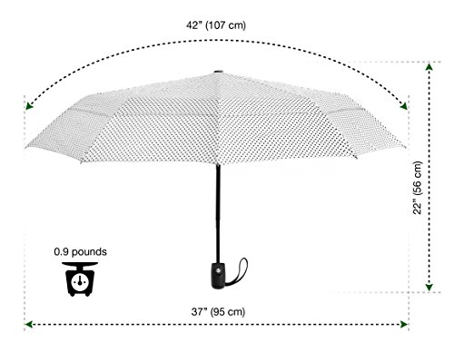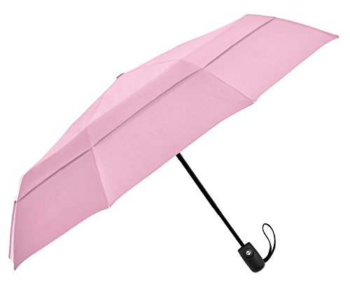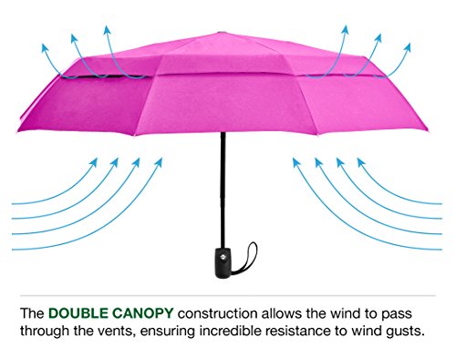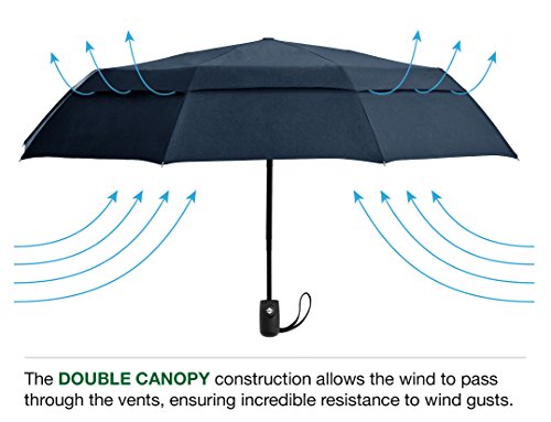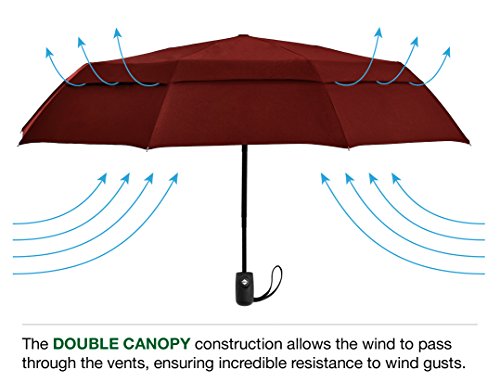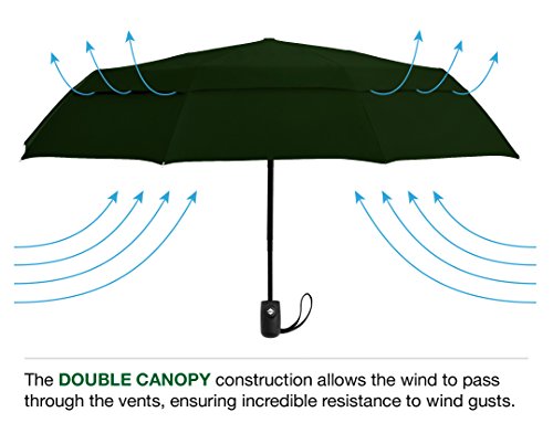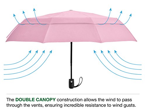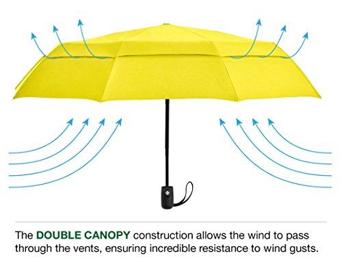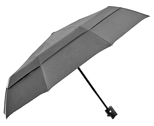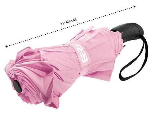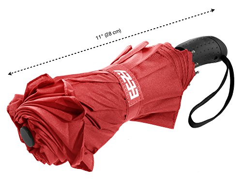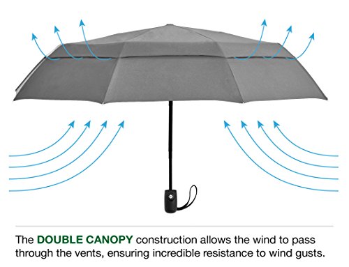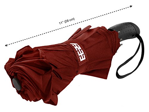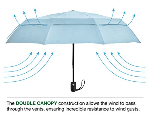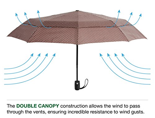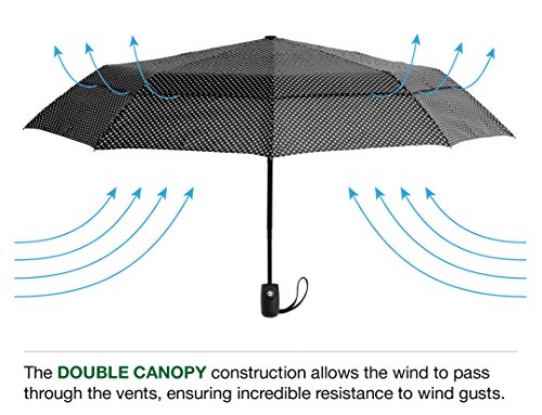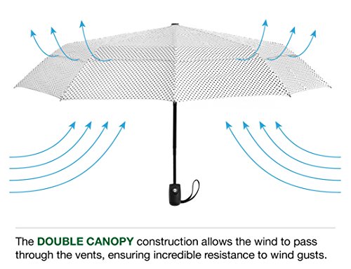 EEZ-Y Compact Travel Umbrella w/ Windproof Double Canopy Construction - Auto Open Close
