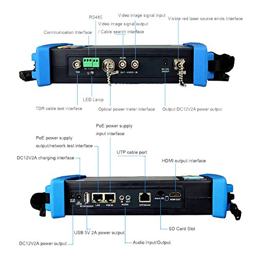 -. Feature : ★ 7 inch 1024 x 600 capacitive touch screen with OSD menu, combining touch screen control and physical buttons, with a 7.4V 6500 mAh lithium Polymer battery, working time up to 16 hours, a good friend for engineers. / ★ Built in Wi-Fi, can receive image from wireless camera, as well as ONVIF and customized IP cameras. Compatible with H.264/MPEG4/MJPEG IP cameras, such as Dahua, HIKVISION, and ACTI Customized service is available. / ★ With LED Lamp, Calculators, music players and other application tools, Support customers self update software. Support network PTZ controller (ONVIF) and 1080p HD Video files and MKV/MPS media files play. / ★ Image can be rotated 180 degrees, display real resolution of the IP camera images; Video screenshot, recording, files named and save, easy to find out. / ★ 100% QC and test of this CCTV tester, comes with 60 days money back and 2 years warranty.