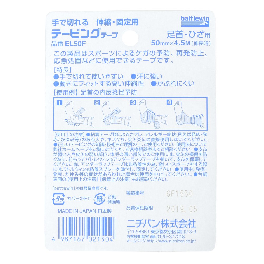 NICHIBAN Battle Wynn taping tape stretching hand cutting type 50mm width 4.5m winding (at the time of extension) Volume 1
