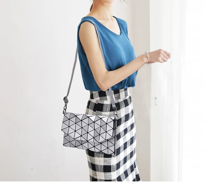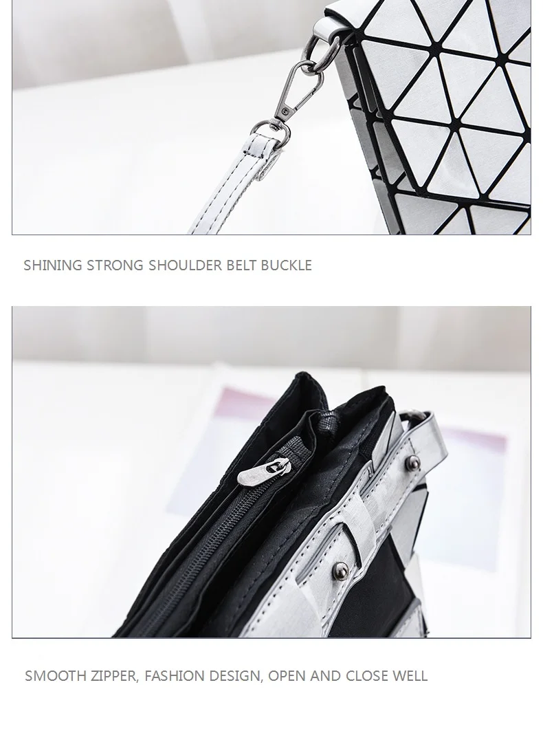 2018新しいデザイナーのファッションバッグ女性発光嚢バッグダイヤモンドトートバッグジオメトリショルダーメッセンジャーバッグレーザー女性財布ハンドバッグ