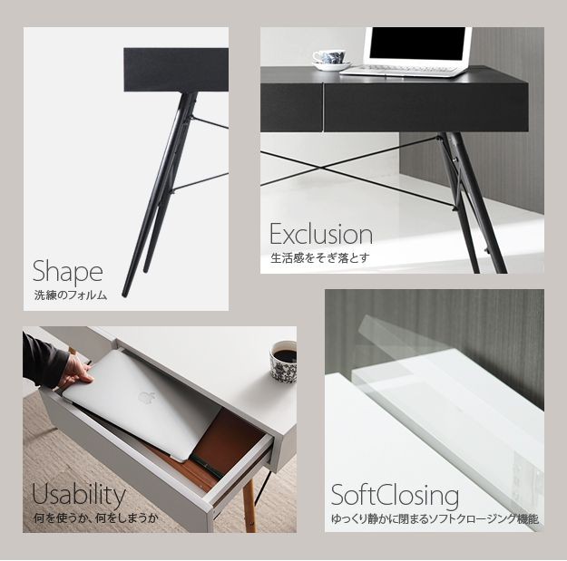 天板にフタ付きのタップ収納が付いた便利なデスクです。ノートパソコンやスマートフォン、タブレットなどの使用に便利。シンプルなデザインでデスクの上もスッキリ☆引き出しはノートパソコンや小物などの収納に!