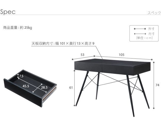サイズ(cm):幅105x奥行53x高さ74cm・約25kg