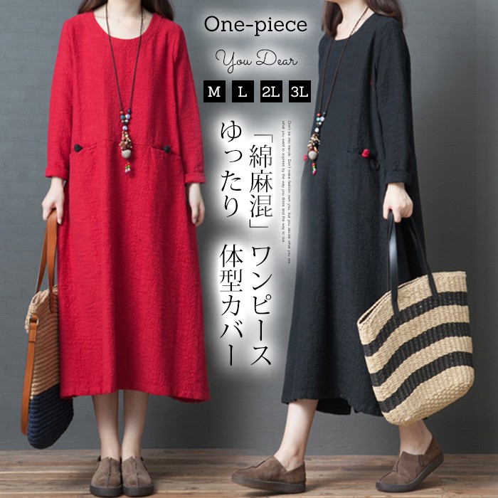 ロングワンピース レディース 綿麻混ワンピース リネンワンピース 秋ワンピース ロング丈 マキシ丈 ゆったり マキシワンピース コットンリネンワンピース 体型カバー 無地 マキシワンピ 大きいサイズ 着痩せ 30代 40代 50代 60代 着痩せ お洒落 おしゃれ オシャレ 長袖 チュニックワンピース ゆるっと ママワンピース 母親 ママ ワンピース・塩素系漂白剤は使用しないでください。★素材:綿麻・ポリエステル★カラー:黒 赤※お客様ご使用のPC環境により商品画像のカラーが多少異なる場合があります。仕入時期により多少デザインなど異なる場合があります。ご了承ください。★サイズ(CM):M: バスト102 肩幅37 袖丈55 着丈111L: バスト106 肩幅38 袖丈56 着丈111XL: バスト108 肩幅39 袖丈57 着丈112XXL:バスト110 肩幅39 袖丈57 着丈112※サイズは人の手によって測っているため、1-3cmの誤差がある場合がございます。予めご了承下さいませ。