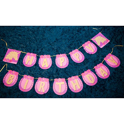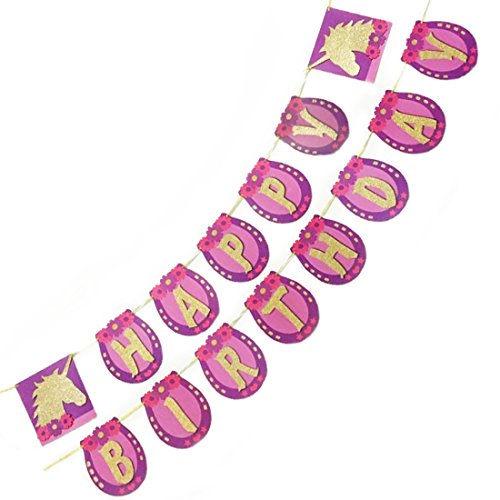 Product Description Set includes a unicorn happy birthday banner in two parts.The "Happy" banner is about 60 inches long. The "Birthday" banner is about 64 inches long. 0