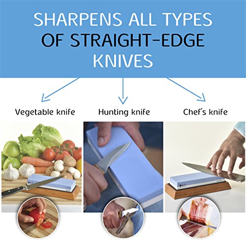 NEVER MET A STRAIGHT-EDGE BLADE IT COULDN’T SHARPENour premium quality sharpening stone works with all STRAIGHT EDGE kitchen cutlery (paring/boning/meat carving/bread/santoku/more) and can even sharpen an ax; does not work with serrated edge-knives