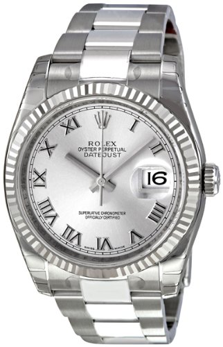 -. Title : Perpetual Datejust Rhodium Dial Stainless Steel 18kt White Gold Mens Watch 116234RRO