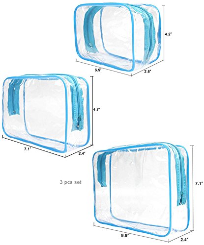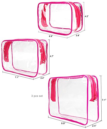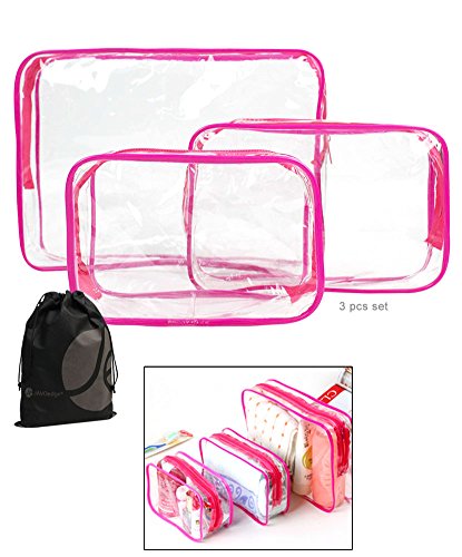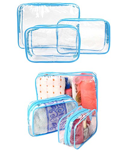 -. Brand : JAVOedge -. Department : unisex-adult -. Feature : Maximize lage space, travel organized, reduce mess with these small to medium sized clear zipper travel pouches, perfect for cosmetics, toiletries, electronics, charging cords, etc. / 3 different sizes, Small:5.9 by3.9 by 2.7 inches, Medium: 7 by 4.7 by 2.3 inches, Large: 9.8 by 7 by 2.3 inches / Clear PVC materials lets you to easily see what is inside each packing cube / Reduce mess and keep your lage organized stop wasting time looking for what you need, Bags are great for storage around the house or office / Money-back satisfaction guarantee -. Label : JAVOedge -. Manufacturer : JAVOedge -. MPN : SIZECLR-00584 -. PackageQuantity : 1 -. PartNumber : SIZECLR-00584 -. ProductGroup : Apparel -. ProductTypeName : APPAREL -. Publisher : JAVOedge -. Studio : JAVOedge -. Title : JAVOedge 3 Pack Clear PVC Toiletry Bag Set with Zipper for Vacation, Bathroom, Storage (3 Sizes)