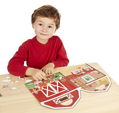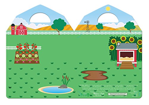 These reusable puffy stickers create down home farm fun! Pick your animal stickers and get the farmer going on his daily chores! Kids can build characters and tell stories with these fun stickers and scenes. Just layer the puffy stickers onto the double-sided background board of the barn or farm scenes, adding animals and tools. Ready for a story change? It's easy to lift, switch, layer, and rearrange it all to depict whatever farm tale a child can imagine! A built-in sticker collection---52 reusable puffy stickers in all--offers endless opportunities for kids to express their creativity and have lots of pretend-play fun, all while improving fine motor skills and communication. It's great for travel, too: The sturdy background board (with built-in handle!) folds to neatly store it all away.Feature