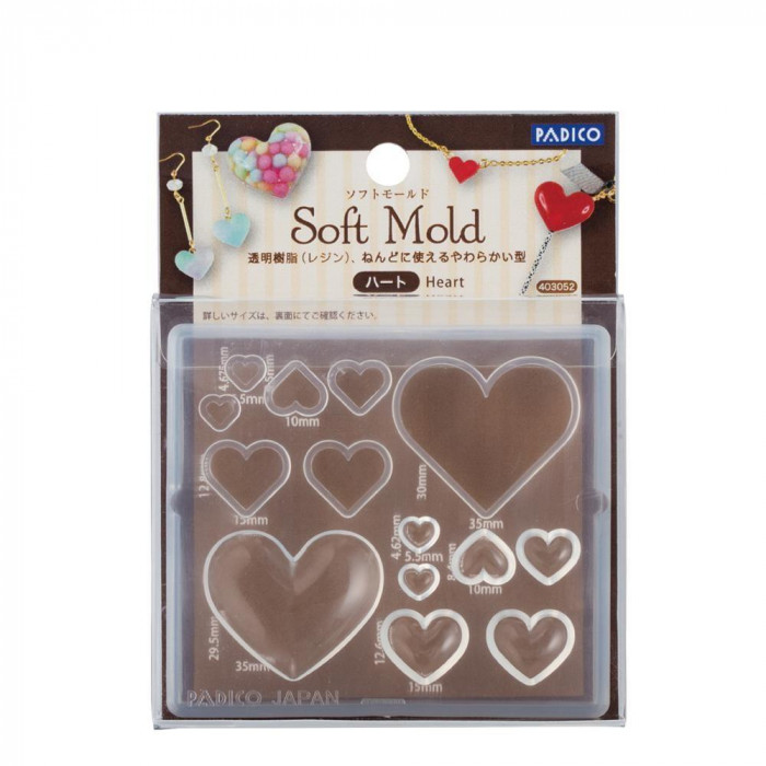 粘土や透明感のあるレジンクラフトにも楽しめる、繰り返し使えるやわらかい型です。紫外線を通す透明なモールドなのでUVレジンがきれいに固まります。また、気泡や粘土の浮きがひと目でわかって便利です。 |