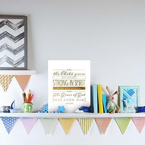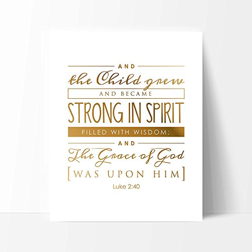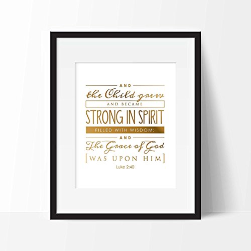 Gold Nursery Art Print, Baby Quote Print (8x10") - Perfect Communion, Baptism, Christening or Baby Gift - And the child grew, Luke 2;40 - Ready to...