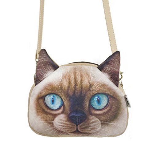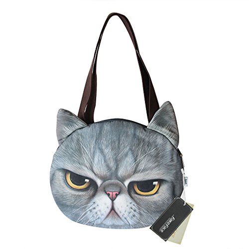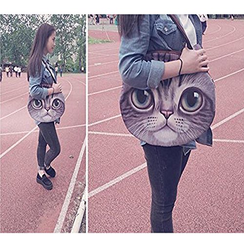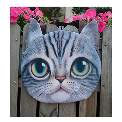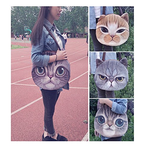 Greenery Women Girls Vivid Cute 3D Cat Head Face Handbag Leisure Shoulder Bag Lightweight Travel Bag